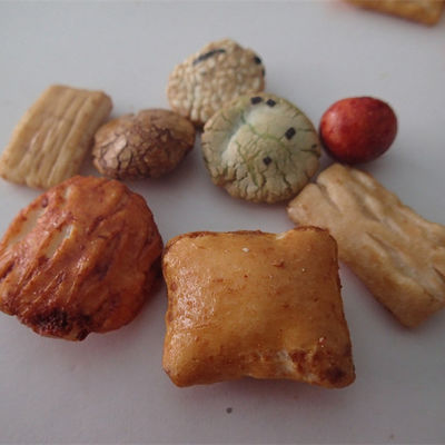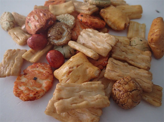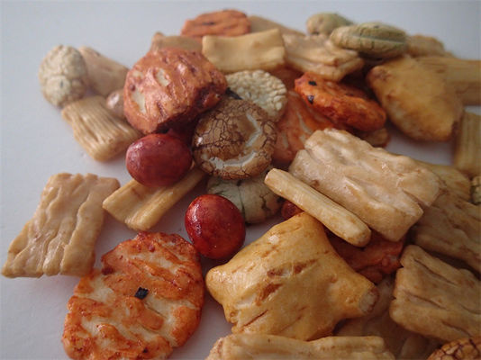 আঠালো চাল, চিনাবাদাম, গমের আটা, ট্যাপিওকা স্টার্চ, স্টার্চ, মাল্টো ডেক্সট্রিন, চিনি, সয়া সস, লবণ, সামুদ্রিক শৈবাল, E102, E133, E150c, E160c