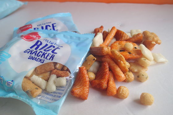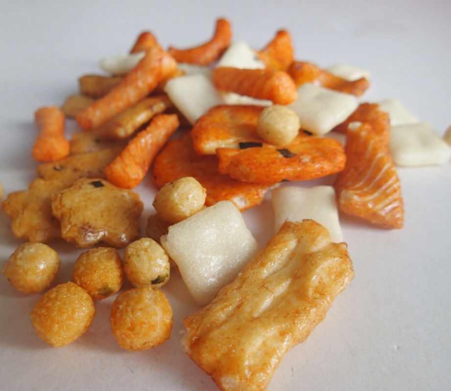 Ingrédient | Riz visqueux, arachide, farine de blé, amidon de tapioca, amidon, dextrine de Malto, sucre, sauce de soja, sel, algue, E160c, E150C |