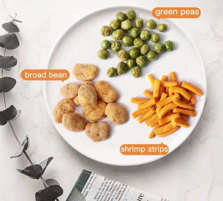 Broad beans, green peas, wheat flour, salt, sugar, palm oil
