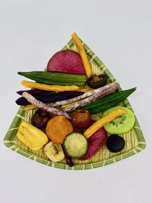 Enjoy a vibrant and nutritious snack made from 12 different vegetables and fruits! Our vacuum-fried chips retain their original color, shape, and taste thanks to advanced low-temperature frying technology. With no added sugar or preservatives, this is a perfect guilt-free snack for health-conscious individuals. Whether you're at the office, on a road trip, or looking for a healthy snack for your kids, this mix delivers both crunch and nutrition!